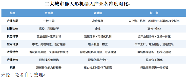 面对人形机器人产业的机遇与挑战,长三角、粤港澳、京津冀正以差异化路径加速技术落地与产业协同,形成“各展所长、互补共生”的突围格局。