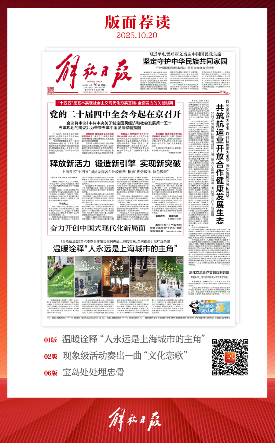 早上好!上观新闻『早读』来啦!2025年10月20日 星期一 农历八月廿九上海阴到多云局部地区有小雨,17~19℃