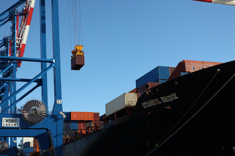 10月19日,在波兰北部格但斯克港,从中国宁波舟山港出发的中欧北极快航航线首艘货船进行装卸工作。历时26天,中欧北极集装箱快航航线首艘货船19日凌晨抵达波兰北部格但斯克港。作为“冰上丝绸之路”核心承载通道之一,中欧北极快航所经的北极东北航道是连接东亚与欧洲的新兴国际航运线路,对优化全球供应链、促进沿线经贸合作具有重要价值。\n 新华社记者 崔力 摄